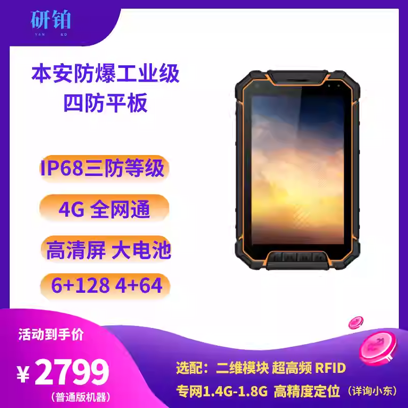 10寸 国产CPU三防加固平板电脑,CPU搭载是RK3588,内存硬盘 8G+128GB 可以选配 8GB+256, 16G+256G 16+512GB ,安装的鸿蒙系统,平板可以拆除无线通信模块 及蓝牙 WIFI等,CNC加工定制,接口方面可以按客户要求定制 标准接口主要配置 RJ45网口,USBA2.0接口,RS232接口,TYPEC接口HDMI接口,DC充电口,及还可以改制航插接口。