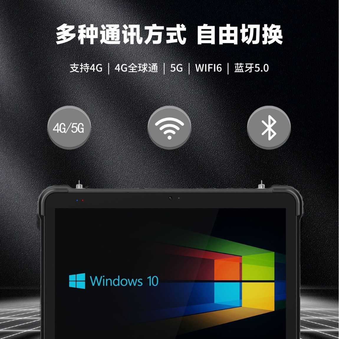 主机内部可提供双频WIFI,Type-C、USB、HDMI、RJ45、DB09、指纹、NFC、二维扫码、GPS、4G/5G等USB、串口、网口等总线扩展方式,用于整合用户的多种通信需求,把一台三防平板电脑电脑变身为一台具备专业通信功能的仪器设备