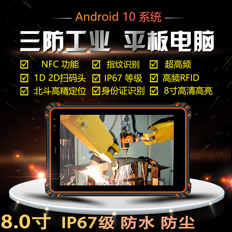 安卓8寸三防工业平板电脑支持NFC/2D扫描/身份证识别/防爆平板